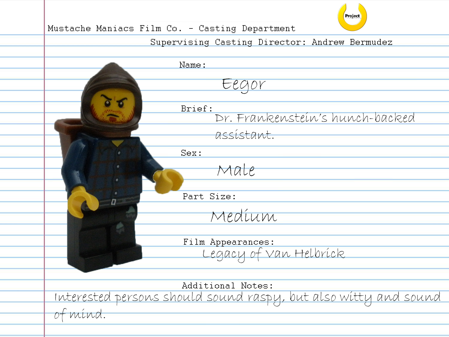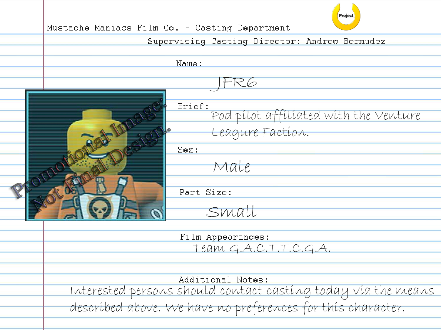 - If you are having trouble viewing all of the character info sheets in full screen, please be patient. As all of these photos are being hosted on the Mustache Maniacs Film Co. Wiki, it will take a while for this post to process all of the needed data. Wait a few minutes, and if you are still having problems, refresh this page.