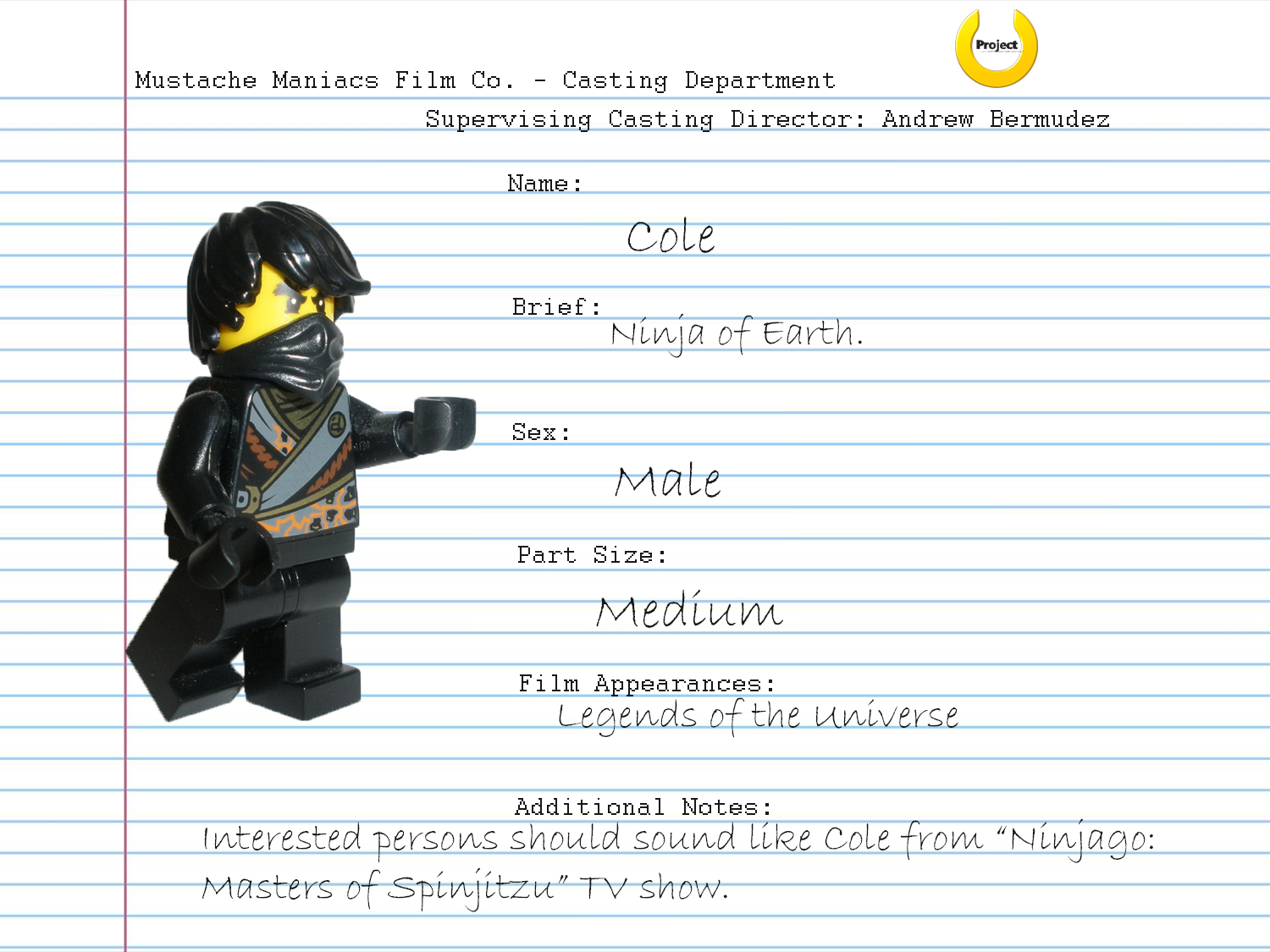 In other news, we have now, for one last time, revised the memo regarding round 3 of casting. Any round 2 parts that were not listed above have re-opened for auditions. We are now also grouping the parts by which movie the characters initially appear in. The deadline is still July 31. To best understand how each character info sheet is laid out, here is a brief key: